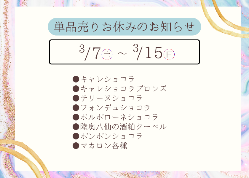ケーキ、焼菓子はもちろん、パン、ショコラ、コンフィズリーなど商品の内容を充実させ、老若男女どなたにも満足していただけるお菓子作りを心がけています。
